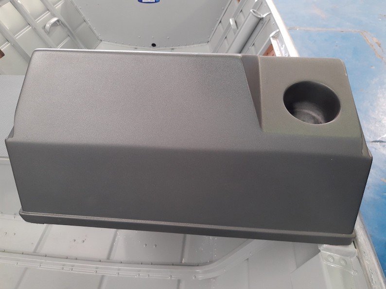 – Cor padrão: Costado alumínio c/ faixa azul e interior cinza.